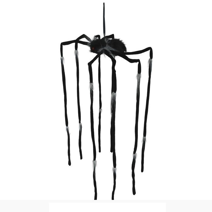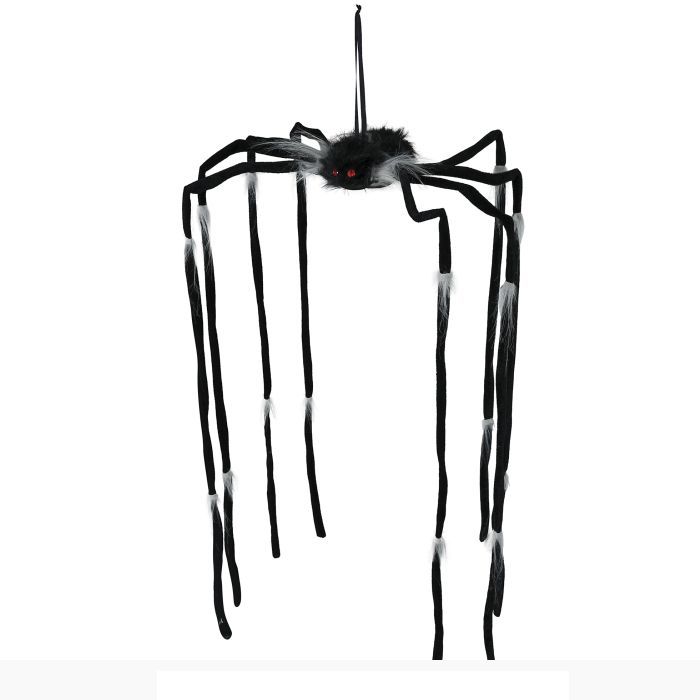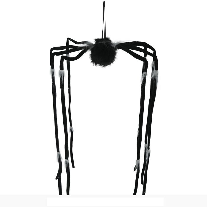 C29293 – Aranha Preta e Cinzenta Peluda, para pendurar, com as seguintes dimensões: comprimento 46cm e altura 80cm. Feito em esferovite e veludo. Artigo de fabrico RPC. Artigo muito utilizado em decoração de festas, principalmente de halloween.