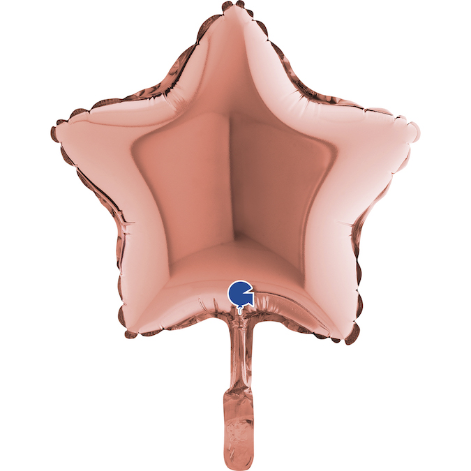 BG09223RG – Balão Estrela Foil ROSE GOLD 9, 1 un, diâmetro 22 cm, 9”, foil, biodegradável. Pode ser enchido com gás hélio (para subir) ou a ar (no chão). Artigo de fabrico Itália, Grabo. Artigo muito utilizado em decoração de festas, principalmente no dia da mãe ou em festas temáticas.