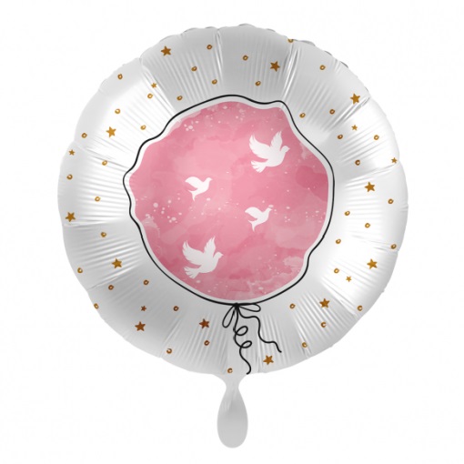 BGE70591 – Balão Foil Redondo Rosa POMBAS BRANCAS 17, feito em foil, diâmetro 43 cm, 17”, biodegradável, pack 1un. Pode ser enchido com gás hélio (para subir) ou a ar (no chão). Artigo de fabrico Alemanha da marca PREMIOLOON. É certamente um artigo muito utilizado em decoração de festas, principalmente em festas infantis. Também pode ser utilizado em festas temáticas, nomeadamente: batizado.