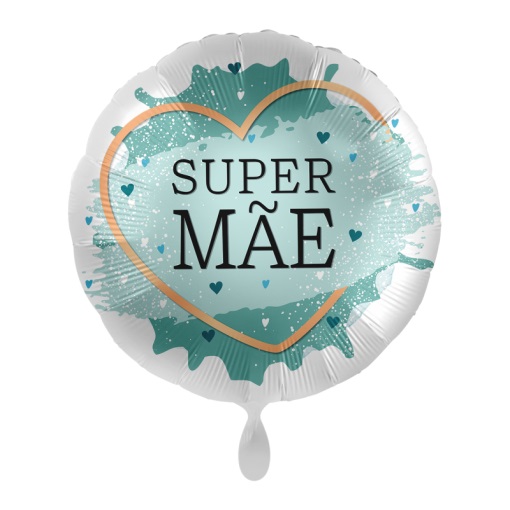 BGE70101 – Balão Foil Redondo “Super Mãe” 17, feito em foil, diâmetro 43 cm, 17”, biodegradável, pack 1un. Pode ser enchido com gás hélio (para subir) ou a ar (no chão). Artigo de fabrico Alemanha da marca PREMIOLOON. Artigo muito utilizado em decoração de festas, principalmente no dia da mãe ou em festas temáticas.