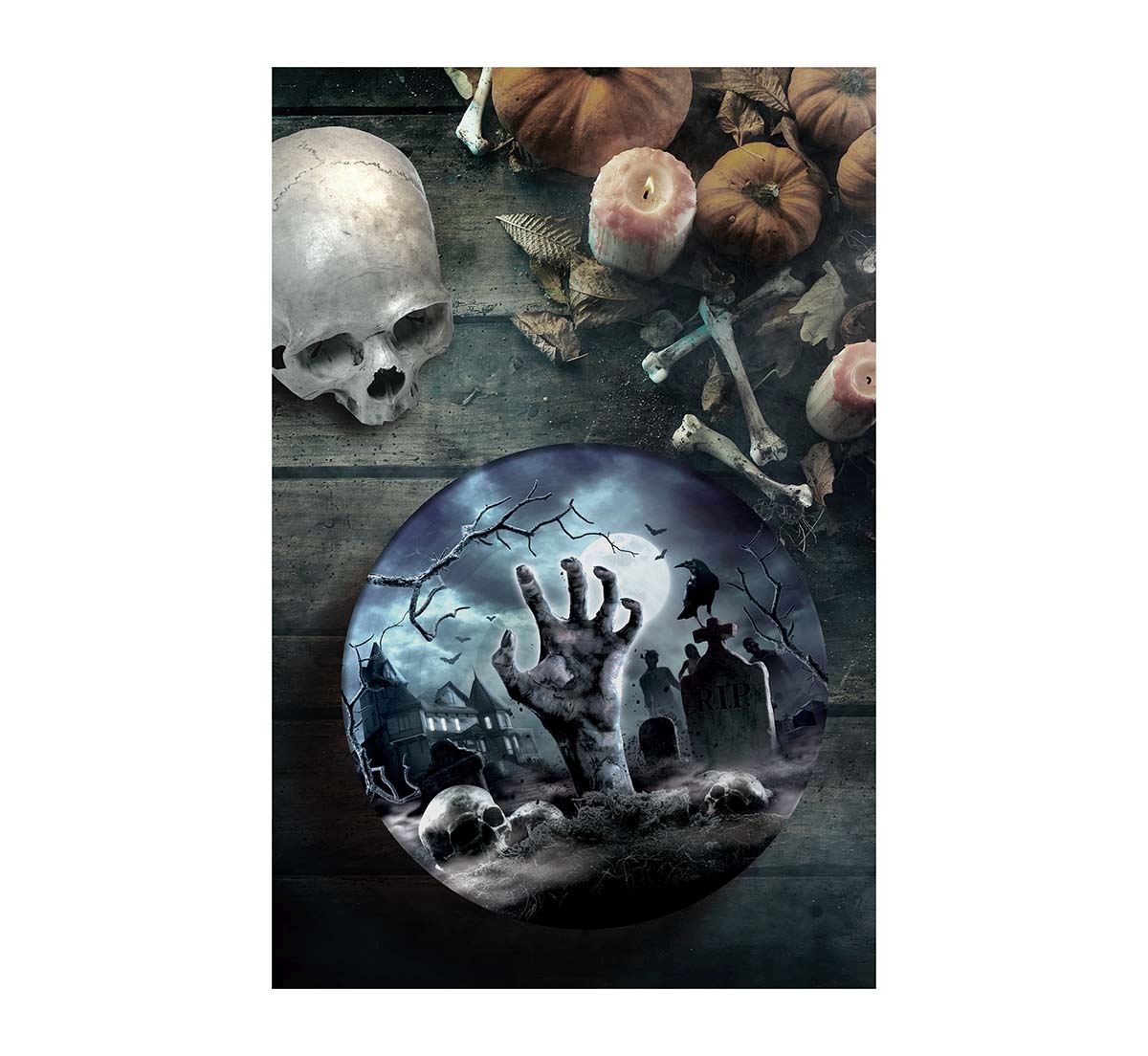 A Bandeja Redonda Cemitério é o artigo ideal que serve para decorar a festa, juntamente com balões lisos, mas também pode ser utilizado numa sessão fotográfica cujo tema é o Halloween. De igual modo, também pode ser utilizada para decorar a mesa que fica totalmente composta se adicionarmos os pratos, copos e guardanapos do tema. No entanto e com a finalidade de se proporcionar uma maior abordagem ao tema, também se pode utilizar o balão de latex ou de foil. De maneira idêntica, pode-se acrescentar algumas decorações tais como animais de caveiras, aranhas, corvos, ratos esqueletos, luz negra etc.