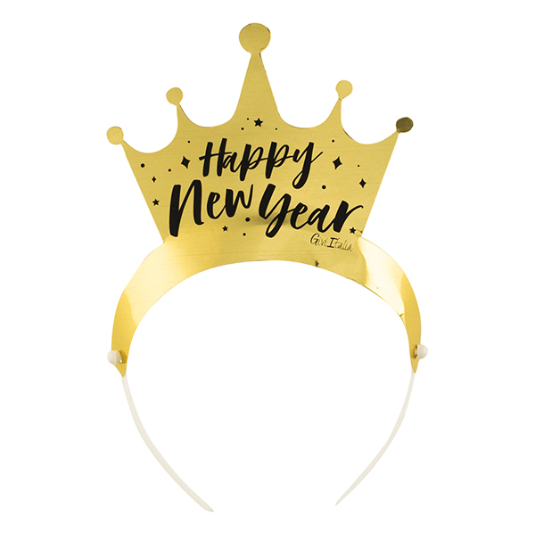 B410.72 – Bandolete Coroa “Happy New Year” Dourada, pack 4un. Artigo de fabrico RPC/Itália. Artigo muito utilizado em decoração de festas, principalmente de Final de Ano. Também pode ser utilizado em festas temáticas, nomeadamente: frozen, mickey, homem aranha, minnie, princesas e muitos outros temas.