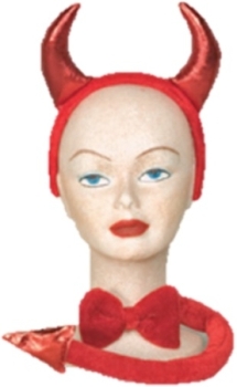 C284J – Conjunto de bandolete, laço e cauda de diabo, veludo vermelho.