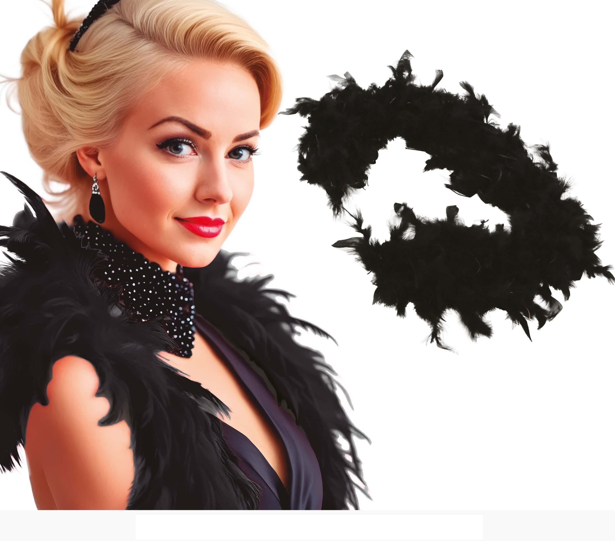 C16342 – Boá Penas Preta 1.80m, feito em penas, da cor preta, comprimento 1.80m, peso 40g, 1 unidade. Artigo de fabrico RPC. É certamente a opção mais indicada para quem quer completar a sua fantasia de anos 20. Também pode ser utilizado em festas cujo tema são as profissões. Juntamente com o vestido e a cigarrilha, o figurino fica completo. De maneira idêntica a Boá Penas Preta 1.80m também pode ser utilizado como acessório de carnaval. Também pode ser utilizada de modo a criar cenários, tais como cenários de ensaios fotográficos, peças de teatro, mas é principalmente utilizado para fantasias. A Boá Penas Preta 1.80m pode ser usado juntamente com outros artigos, nomeadamente: copos, pratos, guardanapos e outras decorações alusivas ao tema da festa.