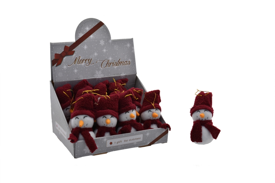 L82058 – Boneco Neve pendurar Bordeaux 16cm, feito em tecido e lã, para pendurar, comprimento 16 cm, pack 1 un. Artigo de fabrico RPC, Itália. É certamente a opção ideal e com muito utilidade na decoração de festas, principalmente em festas de Natal. O Boneco Neve pendurar Bordeaux 16cm juntamente com cercas de madeira e ursos, fazem uma decoração bastante alusiva ao natal. Também pode ser utilizado em festas temáticas, nomeadamente: natal, entre outros.