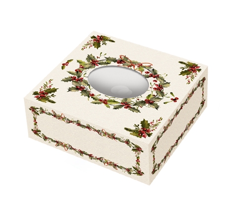 B605670 – Caixa Quadrada Janela Azevinho 30, em cartolina beje, com janela oval, para bolos ou doces ou outros artigos, comprimento 30 cm, largura 30cm, altura 9.5 cm, pack 1un. Artigo de fabrico português. Artigo essencial em festas de aniversário, pois permite transportar bolos ou chocolates. A Caixa Quadrada Janela Azevinho 30 é um elemento que serve para decorar a festa, juntamente com outros tipos de descartáveis. Também pode ser utilizado numa sessão fotográfica cujo tema é Smash the Cake. Eventualmente também pode ser utilizada para decorar a mesa. A mesa fica totalmente composta se adicionarmos os pratos, copos e guardanapos do tema. Com a finalidade de se proporcionar uma maior abordagem ao tema, pode-se utilizar o balão de latex liso . De maneira idêntica, pode-se acrescentar alguns acessórios tais como peluches, flores, penas, etc.