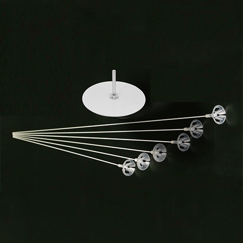 B19551 – Centro Mesa PP 6 balões, branco, adequado para balões de 5” até 12”. Inclui 1 base em plástico branco com diâmetro 18cm, comprimento dos suportes brancos 50cm, 55cm, 60cm, 65cm, 70cm e 75cm. Artigo de fabrico RPC. É certamente um artigo muito utilizado em decoração de festas, principalmente em festas infantis. Também pode ser utilizado em festas temáticas, nomeadamente: dia dos namorados.