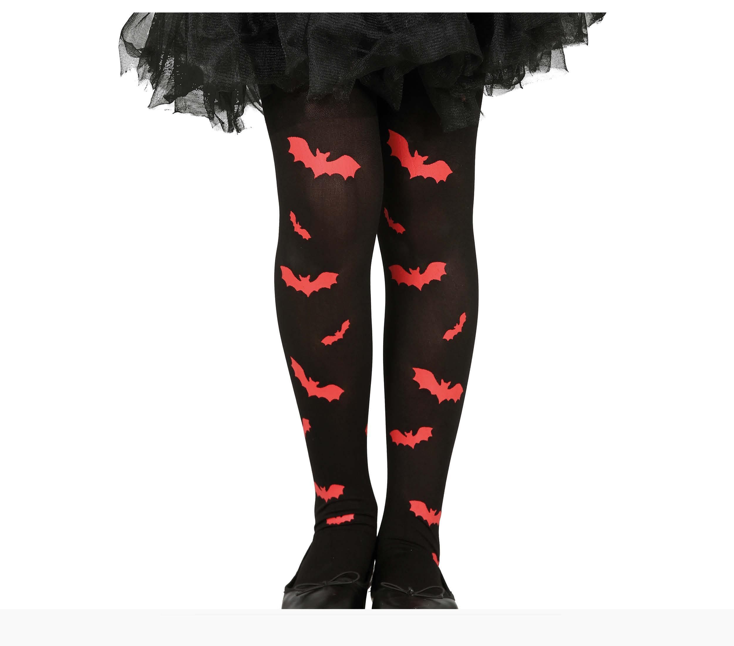 C17141 – Collants Preta Morcegos Vermelhos Criança 7/10 anos, pack 1un. Artigo de fabrico RPC/Espanha.