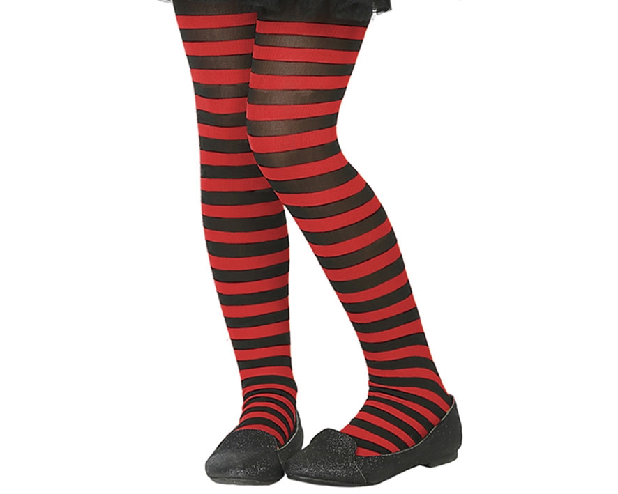 C59295 – Collants Pretas Riscas Vermelhas Criança 8/12 anos, (130-145cm) pack 1un. Artigo de fabrico RPC/Espanha.