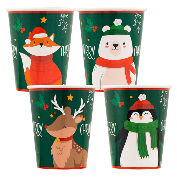 Os Copos Papel Arvore Natal “Santa’s Friends” 250ml são amplamente utilizados na decoração de mesas. Também pode ser utilizada de modo a criar cenários, tais como cenários de ensaios fotográficos, peças de teatro, mas é principalmente utilizado para decorar paredes que ficam por trás da mesa principal onde se colocam os bolos.