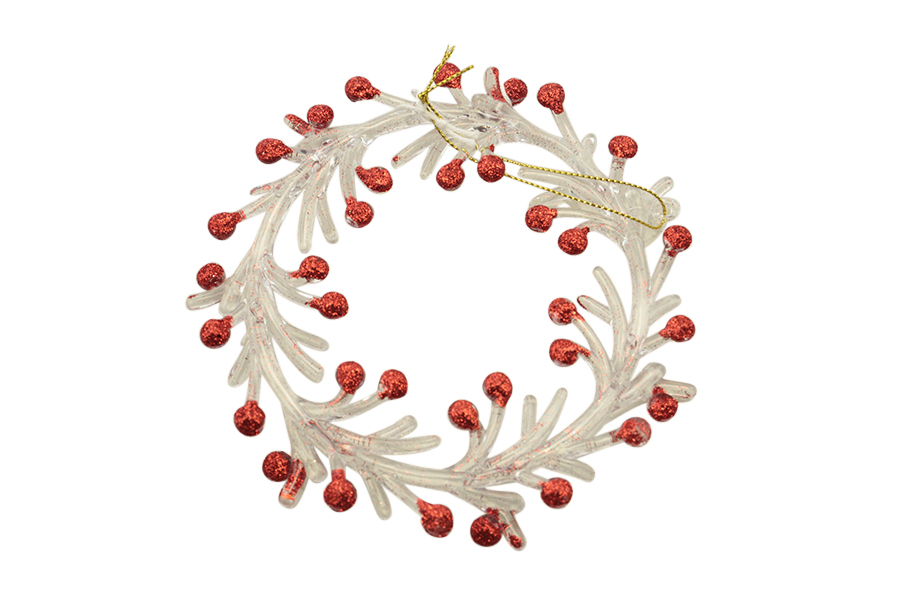 L83374 – Coroa Vermelha 13.5cm, para pendurar, diâmetro 13.5cm, pack 1un. Feito em plástico transparente pintado de vermelho. Artigo de fabrico RPC/Itália. A Coroa Vermelha 13.5cm juntamente com as bolas de natal confere à decoração um ar muito encantador, principalmente quando colocado nos pinheiros de natal. Ideal para ser utilizado com o veado brancognomos ou com o pai natal. Amplamente utilizado em decorações natalícias juntamente com a cerca de madeira com neve e também em festas infantis cujo tema são os doces.