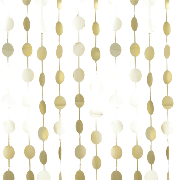 A Cortina metálica Foil Bolas DOURADA MATE é amplamente utilizada na decoração de portas e paredes. Também pode ser utilizada de modo a criar cenários, tais como cenários de ensaios fotográficos, peças de teatro, mas é principalmente utilizado para decorar paredes que ficam por trás da mesa principal onde se colocam os bolos.