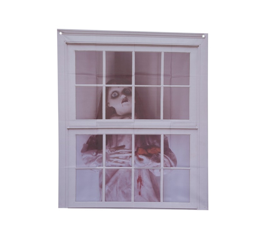 C26601 – Decoração janela boneca, autocolante, altura 78cm, comprimento 90cm, pack 1un. Artigo de fabrico RPC. Artigo muito utilizado em decoração de festas, principalmente de halloween.