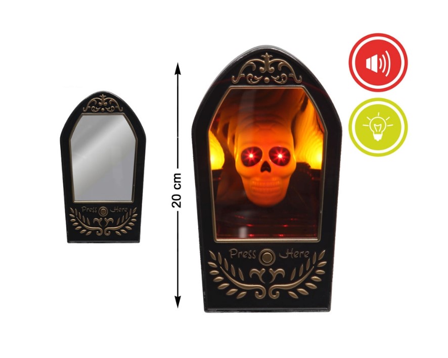 C09124 – Espelho luz e som, com comprimento de 12cm e altura 27cm. Artigo de fabrico RPC. Artigo muito utilizado em decoração de festas, principalmente de halloween.