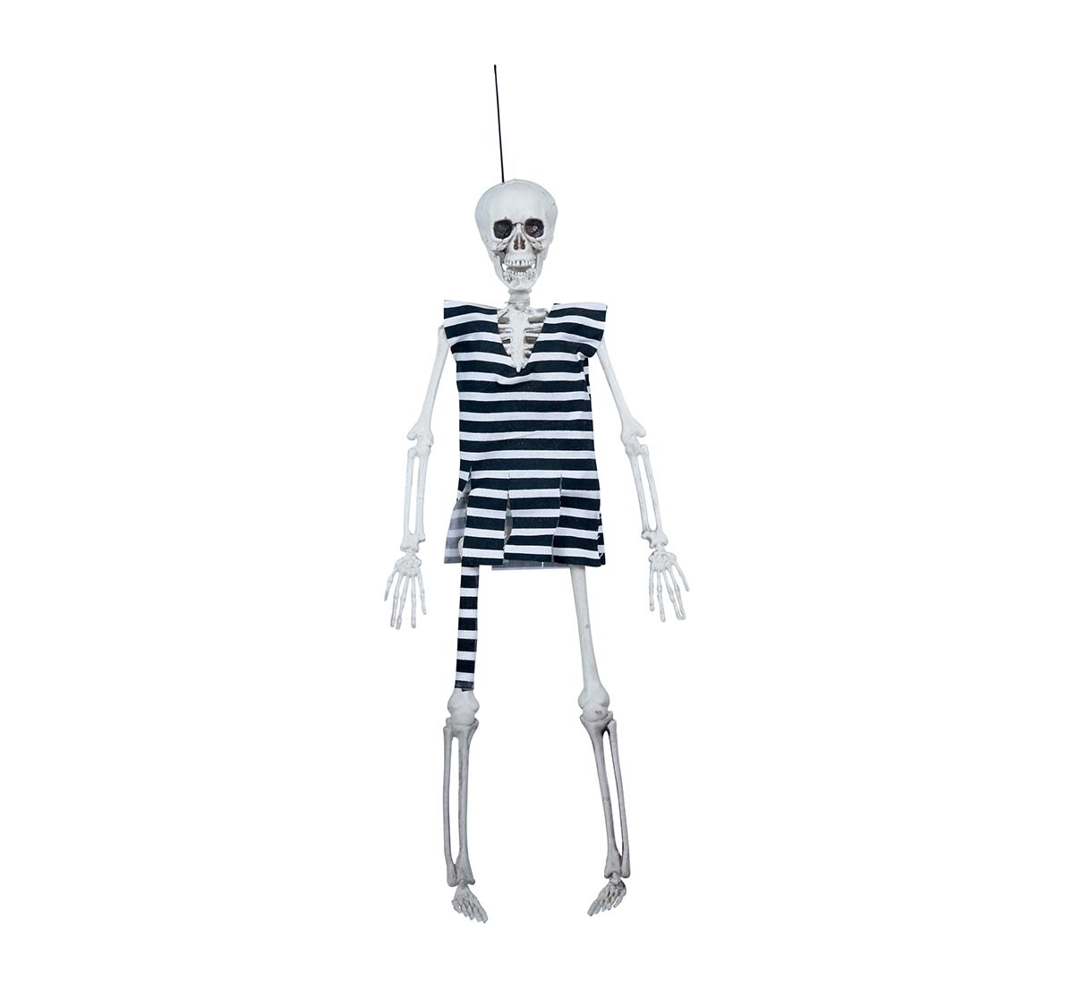 C24000 – Esqueleto Menino Preso 40cm, para pendurar, altura 40 cm, feitos em plástico. Artigo de fabrico RPC. Artigo muito utilizado em decoração de festas, principalmente de halloween.
