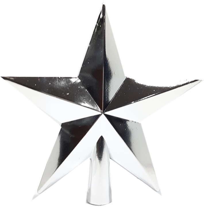 L51028/1 – Estrela topo árvore prata para colocar em pinheiros de natal, comprimento 20 cm, altura 19.5 cm, largura 2.5 cm. Artigo de fabrico China. Ideal para decorações natalícias. Utilizado em conjunto com outros artigos decorativos de natal, tais como o gnomo ou o pai natal. É com toda a certeza um artigo indispensável para se ter a decorar árvores de natal.