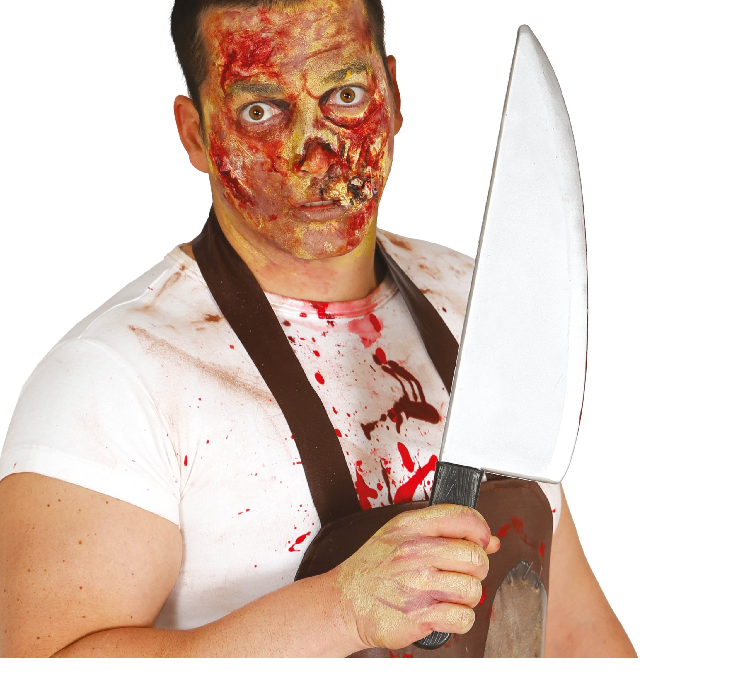 A Faca de Talho Halloween é um acessório do fato e é amplamente utilizado em festas de Carnaval ou de Halloween. Também pode ser utilizada de modo a criar cenários, tais como cenários de ensaios fotográficos, peças de teatro, mas é principalmente utilizado para decorar ambientes de morte.