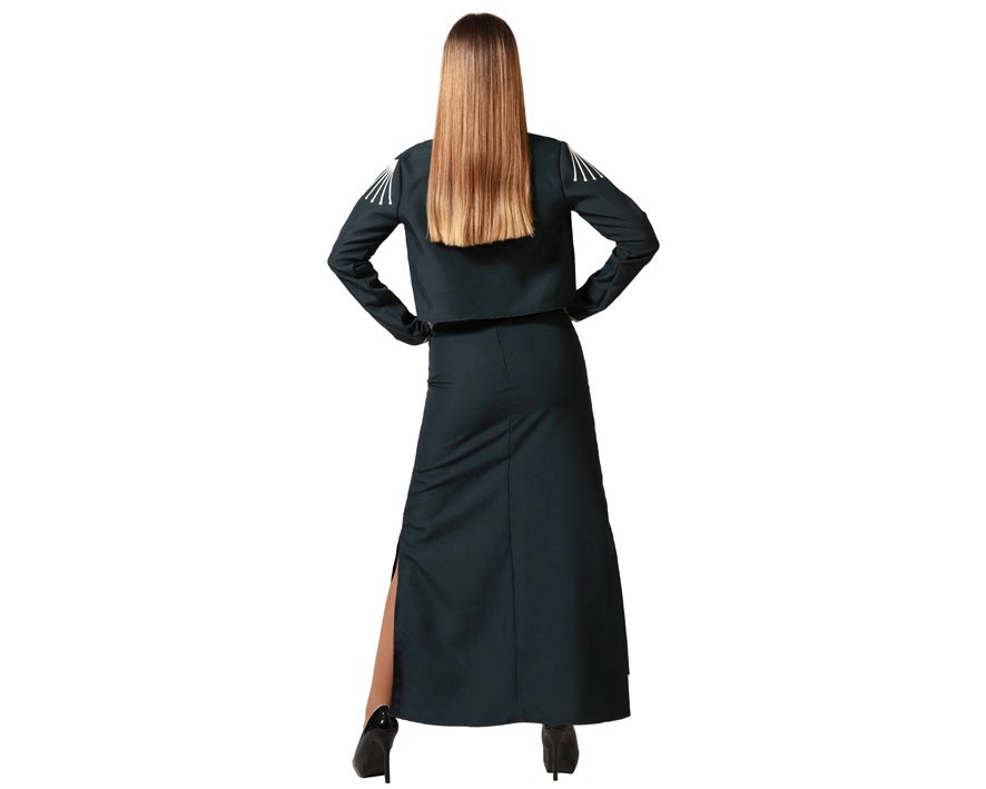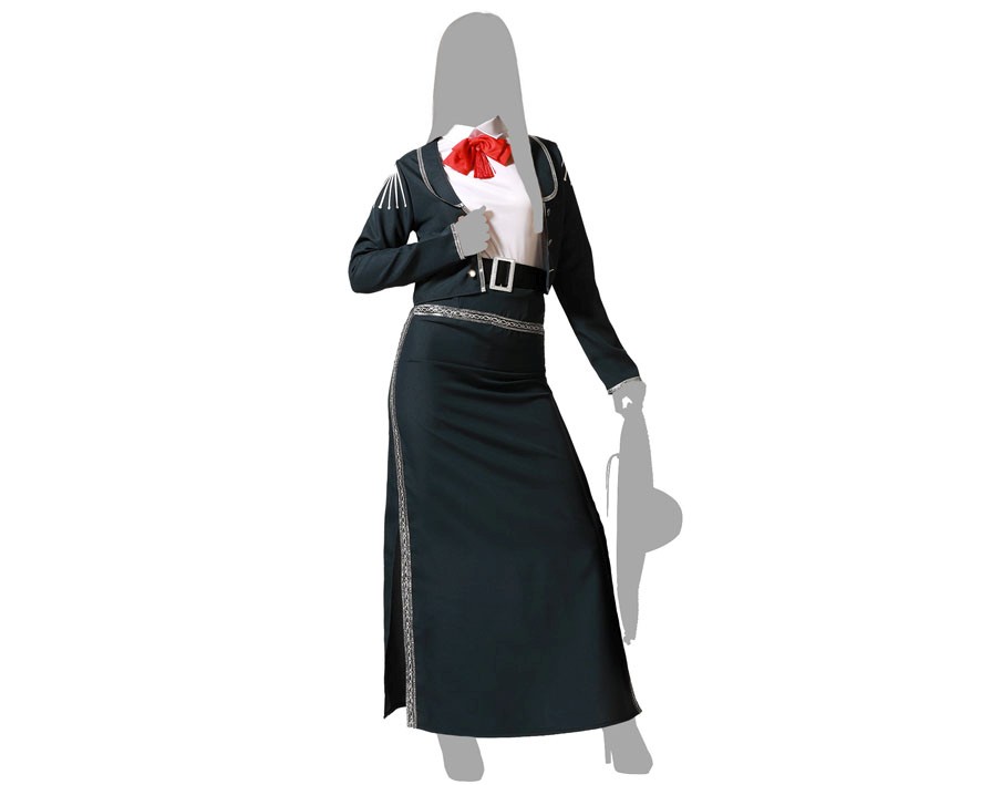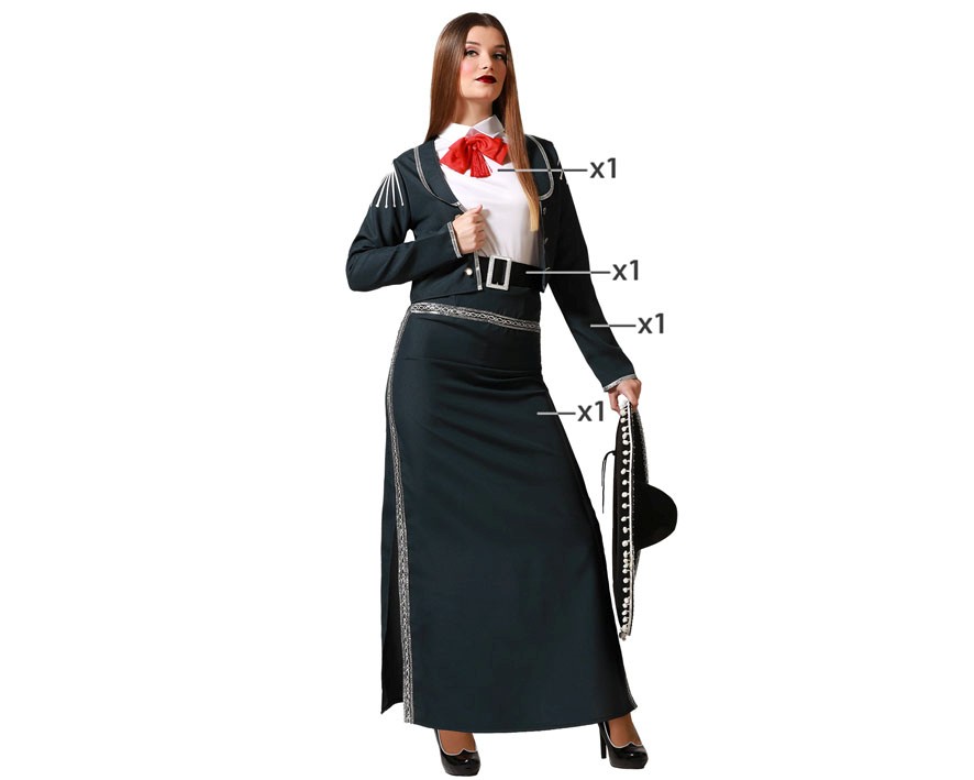 C74601 – Fato adulta Mariachi Preta M/L, inclui casaco, camisa com laço, cinto e saia. Não inclui chapéu e viola. Medidas: busto 95-105 cm, cintura 80-90 cm, ancas 100-110 cm. Artigo de fabrico RPC/Espanha. É certamente um artigo muito utilizado em decoração de festas, principalmente em festas infantis. Também pode ser utilizado em festas temáticas, nomeadamente: méxico. É certamente a opção mais indicada para quem quer completar a sua fantasia de carnaval. Também pode ser utilizado em festas cujo tema são as profissões. Juntamente com a guitarra, o figurino fica completo.