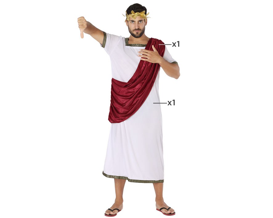 C59990 – Fato adulto Romano XL, inclui túnica. Não inclui coroa. Medidas: busto 110-120 cm, cintura 105-120 cm, ancas 115-130 cm. Artigo de fabrico RPC/Espanha. É certamente um artigo muito utilizado em decoração de festas, principalmente em festas infantis. Também pode ser utilizado em festas temáticas, nomeadamente: itália.