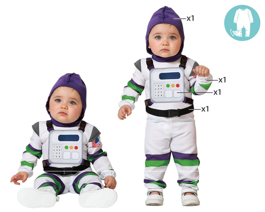 C72046 – Fato bébé Astronauta 12-24 meses, inclui fato completo, cinto, peitoral e gorro. Não inclui os collants. Artigo de fabrico RPC/Espanha. É certamente um artigo indispensável em festas, principalmente em infantis. Também pode ser utilizado em festas temáticas, nomeadamente: espaço. É certamente a opção mais indicada para quem quer completar a sua fantasia de Carnaval. Também pode ser utilizado em festas cujo tema é o mágico. Juntamente com estrelas e planetas, o figurino fica completo. De maneira idêntica o Fato bébé Astronauta 12-24 também pode ser utilizado como acessório de Carnaval. Também pode ser utilizada de modo a criar cenários, tais como cenários de ensaios fotográficos, peças de teatro, mas é principalmente utilizado para fantasias. Pode ser usado juntamente com outros artigos, nomeadamente: copos, pratos, guardanapos e outras decorações alusivas ao tema da festa.