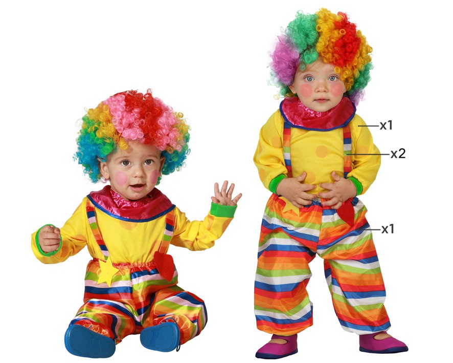 C23752 – Fato bébé Palhaço Riscas 12-24 meses, inclui calças, suspensórios e camisa. Não inclui peruca nem os collants. Artigo de fabrico RPC/Espanha. É certamente um artigo indispensável em festas, principalmente em infantis. Também pode ser utilizado em festas temáticas, nomeadamente: mel. É certamente a opção mais indicada para quem quer completar a sua fantasia de Carnaval. Também pode ser utilizado em festas cujo tema é o mágico. Juntamente com flores, o figurino fica completo. De maneira idêntica o Fato bébé Palhaço Riscas 12-24 também pode ser utilizado como acessório de Carnaval. Também pode ser utilizada de modo a criar cenários, tais como cenários de ensaios fotográficos, peças de teatro, mas é principalmente utilizado para fantasias. Pode ser usado juntamente com outros artigos, nomeadamente: copos, pratos, guardanapos e outras decorações alusivas ao tema da festa.