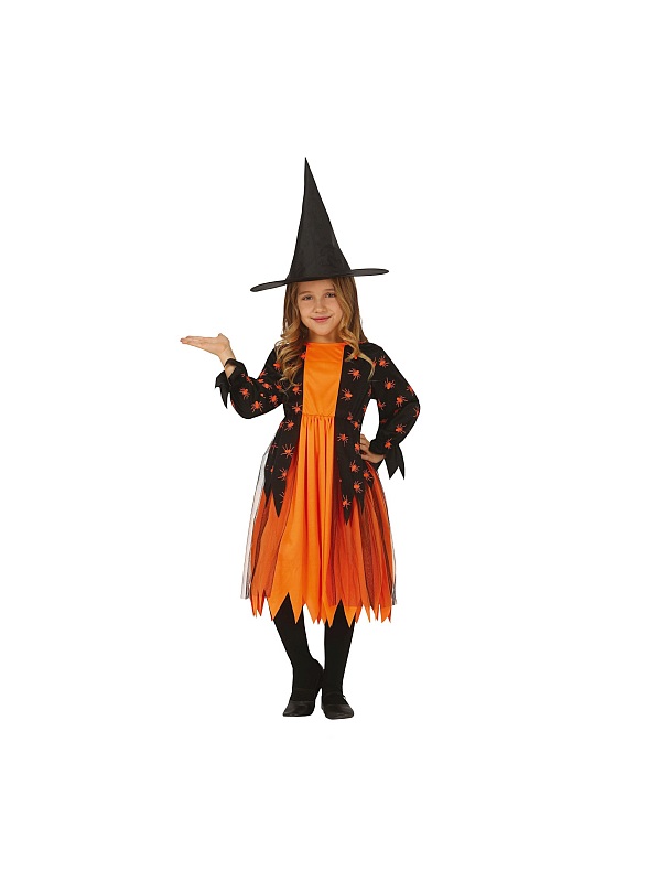 C77046 – Fato Bruxa com Aranhas 3/4 anos, criança. Inclui vestido e chapéu mas a vassoura deve ser adquirida à parte. Artigo de fabrico RPC/Espanha.