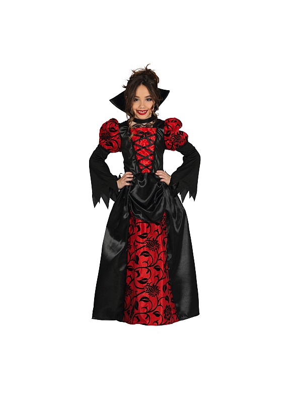 C87396- Fato Condessa Vampira 7/9 anos, criança. Inclui vestido e colarinho. O bastão deve ser adquirido à parte. Artigo de fabrico RPC/Espanha.