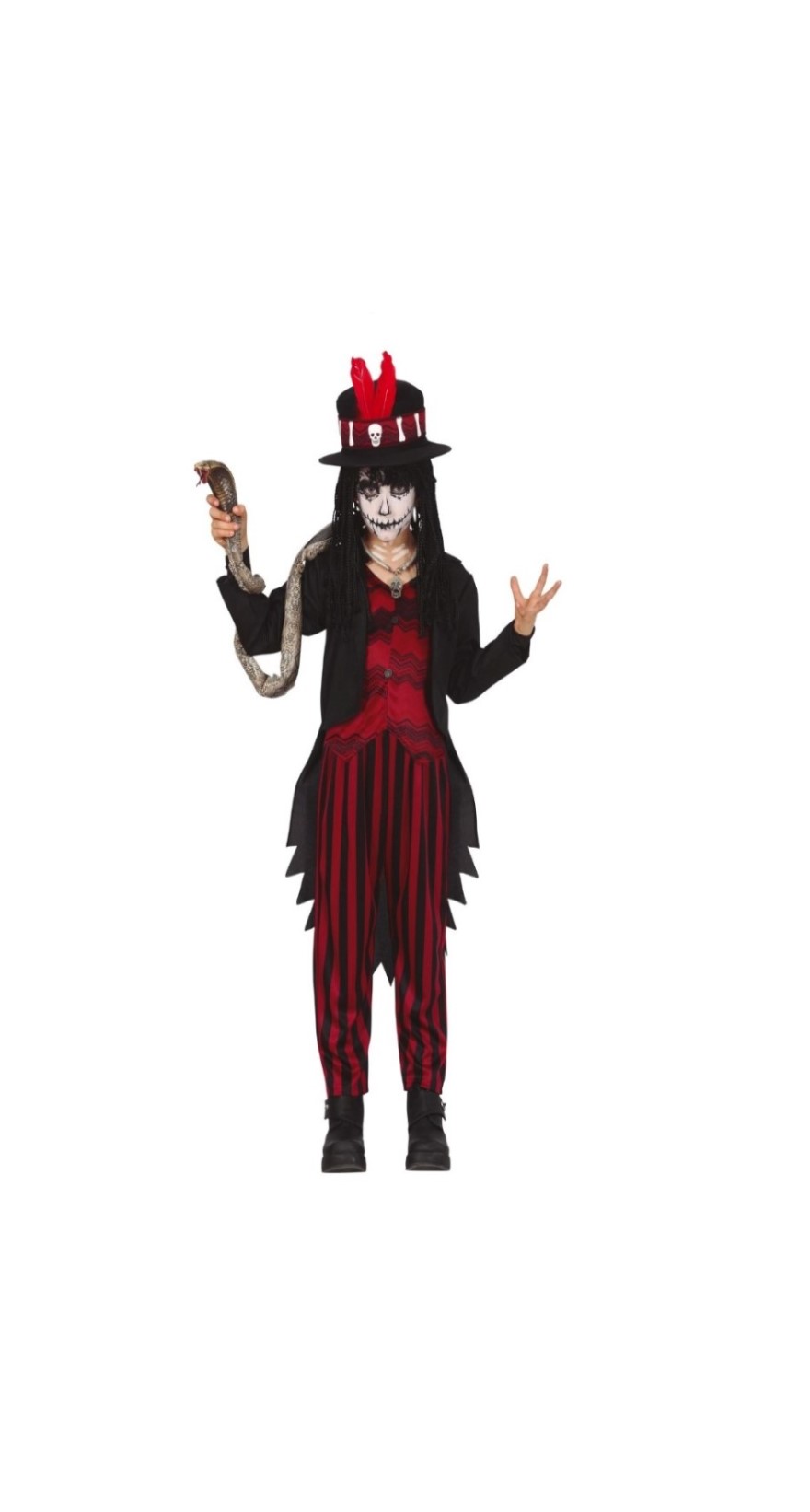 C77117- Fato de Feiticeiro VOODOO menino 10/12 anos. Inclui gorro, casaco com camisa e calças. O bastão deve ser adquirido à parte. Artigo de fabrico RPC/Espanha.