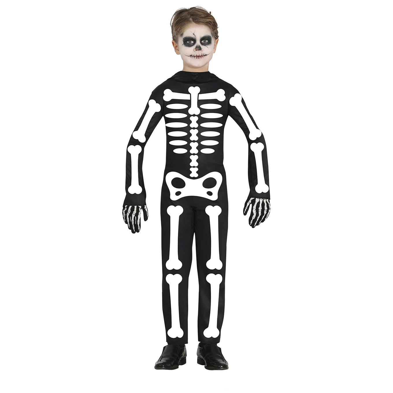 C78194 – Fato Esqueleto menino 7/9 anos. Inclui fato completo. As luvas de esqueleto devem ser adquirido à parte. Artigo de fabrico RPC/Espanha.