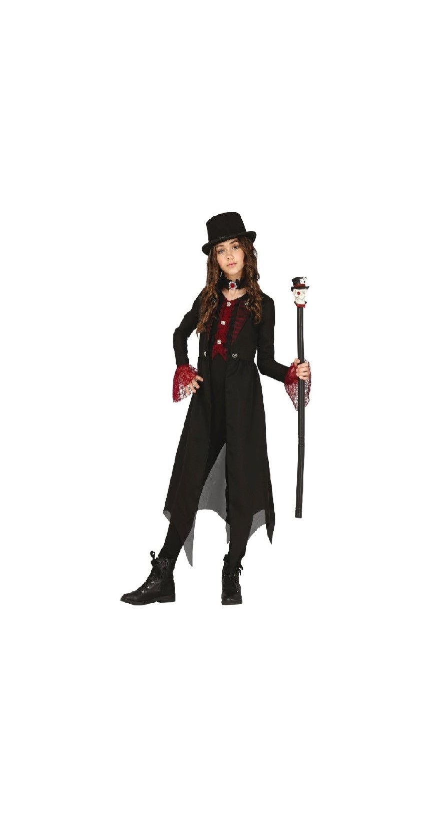 C77372- Fato Gótica Menina 10/12 anos, criança. Inclui casaco com colete. Não inclui: calças, chapéu e bastão. Artigo de fabrico RPC/Espanha.