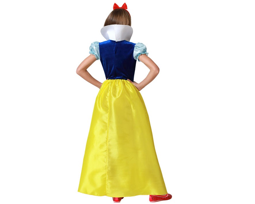 C72118 – Fato menina Branca de Neve 10/12 anos, inclui vestido e bandolete. Não inclui bandolete e laço vermelho. Medidas: busto 75-81 cm, cintura 66-70 cm, ancas 81-87 cm, altura 145-160 cm. Artigo de fabrico RPC/Espanha. É certamente um artigo indispensável em festas, principalmente em infantis. Também pode ser utilizado em festas temáticas, nomeadamente: princesas e Branca de Neve. Analogamente também é um fato importante no Carnaval para as meninas cujo desejo é o de serem princesas por um dia.