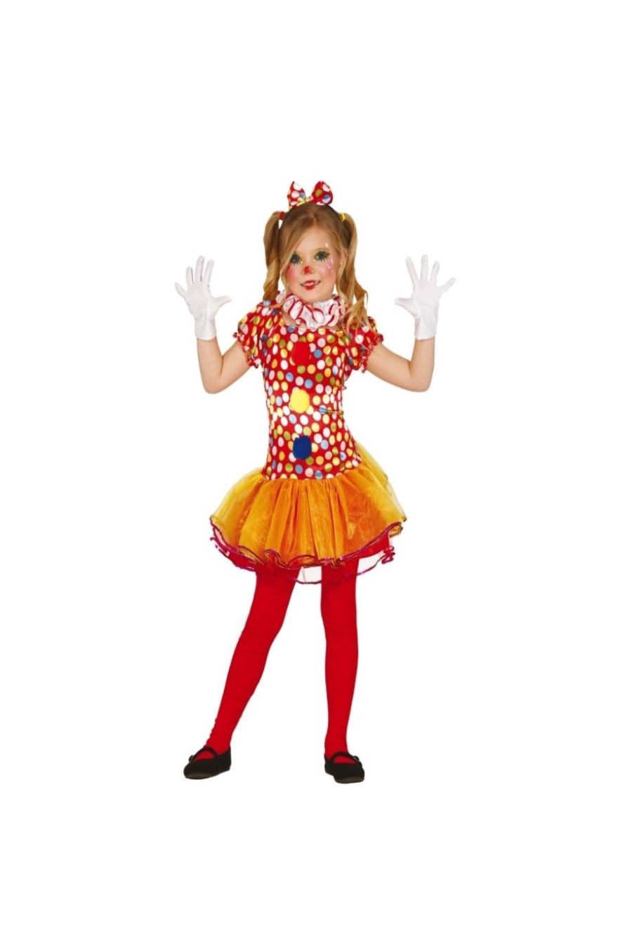 FT83395 – Fato menina Palhaça 3/4 anos, inclui vestido, bandolete e lenço do pescoço. Não inclui luvas nem collants. Artigo de fabrico RPC/Espanha. É certamente um artigo indispensável em festas, principalmente em infantis. Também pode ser utilizado em festas temáticas, nomeadamente: circo. Analogamente também é um fato importante no Carnaval para as meninas cujo desejo é o de serem palhacitas por um dia.