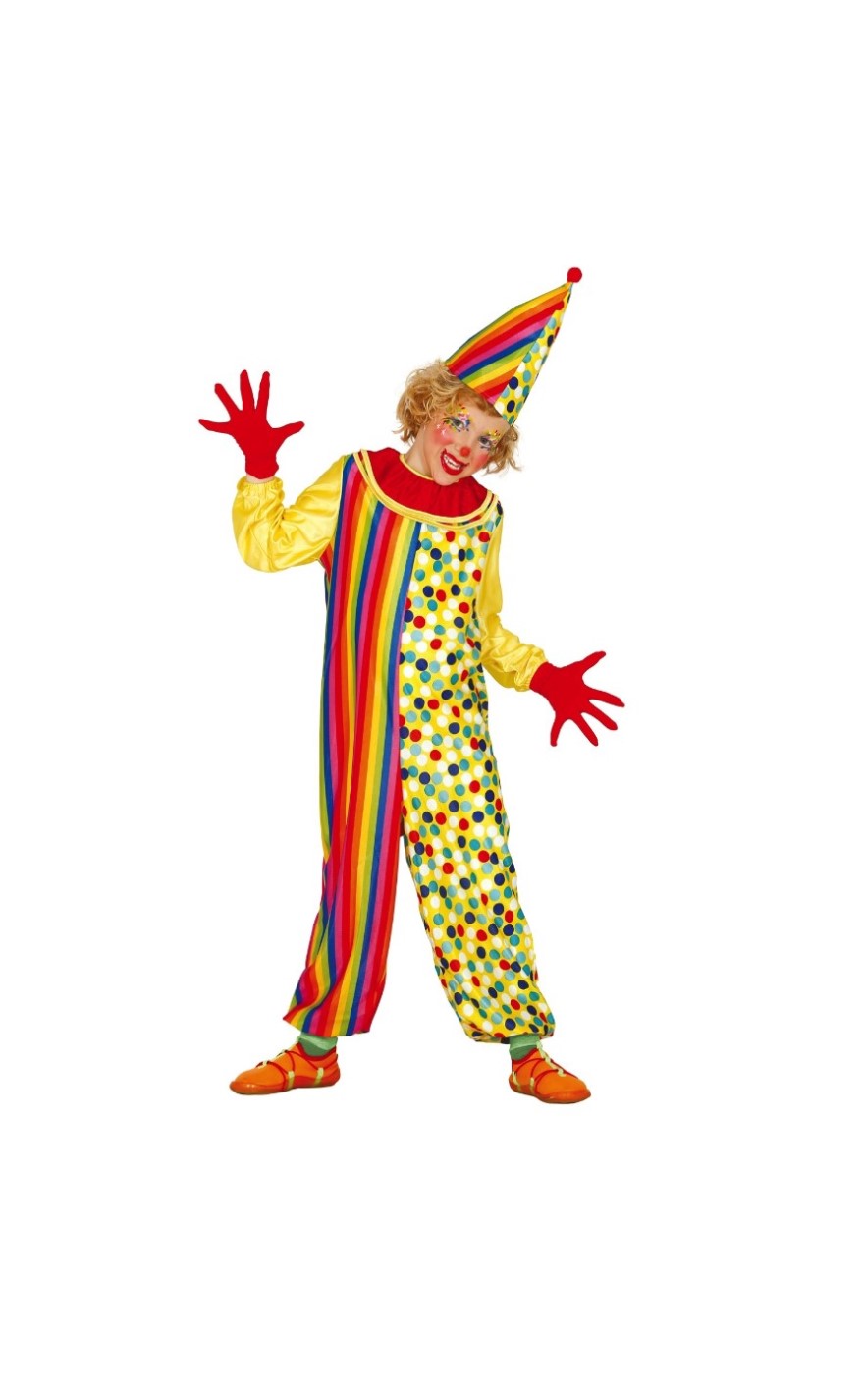 FT83401 – Fato menino Palhaço 7/9 anos, inclui fato completo e chapéu. Não inclui luvas. Artigo de fabrico RPC/Espanha. É certamente um artigo indispensável em festas, principalmente em infantis. Também pode ser utilizado em festas temáticas, nomeadamente: circo. Analogamente também é um fato importante no Carnaval para os meninos cujo desejo é o de serem palhacitos por um dia.