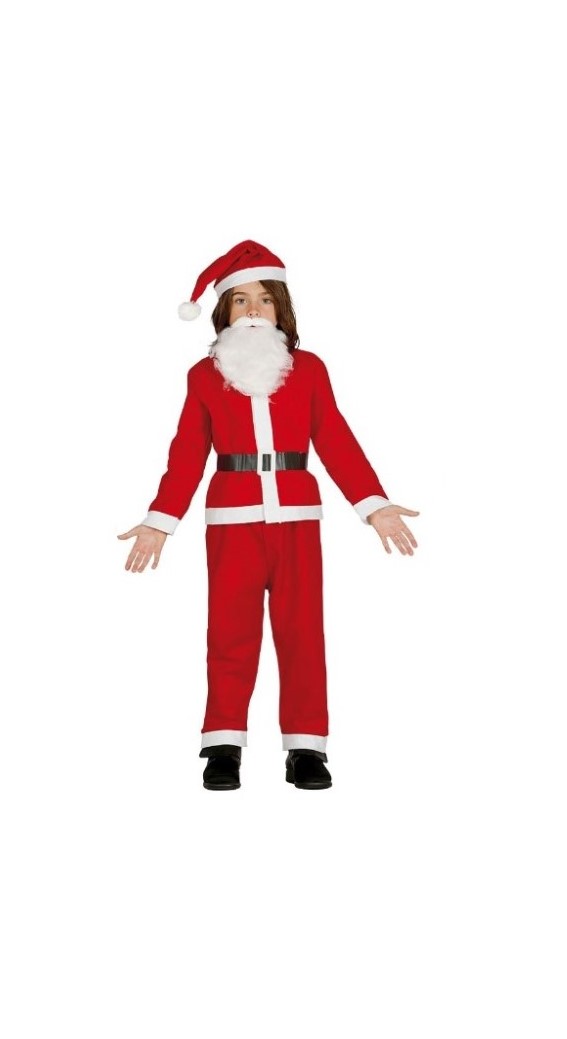 L42746 – Fato Pai Natal criança com barba tamanho 5/6. Ideal para festas natalícias ou para sessões fotográficas cujo tema é o Natal. Artigo de fabrico Espanha. Em resumo, por ser um fato completo inclui não apenas calças e casaco, como também cinto. O gorro e a barba normalmente são acessórios, também estão incluídos. O saco de pai natal pode ser adquirido à parte.