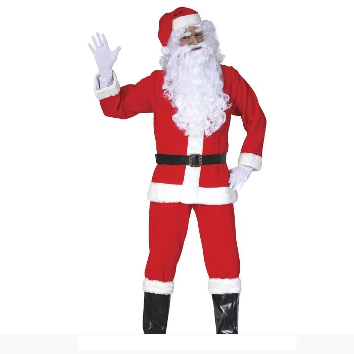 L41683 – Fato Pai NatalLuxo adulto tamanho L (42-44). Ideal para festas natalícias ou para sessões fotográficas cujo tema é o Natal. Artigo de fabrico Espanha. Em resumo, por ser um fato completo inclui não apenas calças e casaco, como também tapabotaas, cinto, gorro, sobrancelhas e barba. O saco de pai natal pode ser adquirido à parte. O Fato Pai Natal Luxo adulto tamanho L é muito utilizado em aldeias Natal.