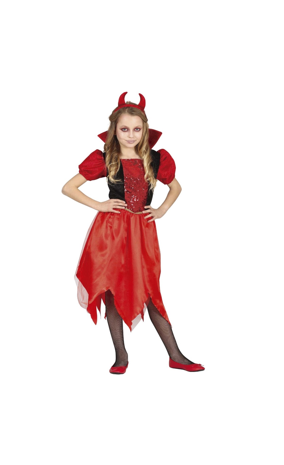 C77653- Fato Pequena Diaba Vermelha menina 7/9 anos. Inclui vestido e bandolete. O trident deve ser adquirido à parte. Artigo de fabrico RPC/Espanha.