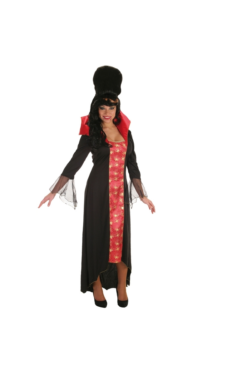 FT9116 – Fato de Vampira, na cor preto e vermelho, com teias de aranha.