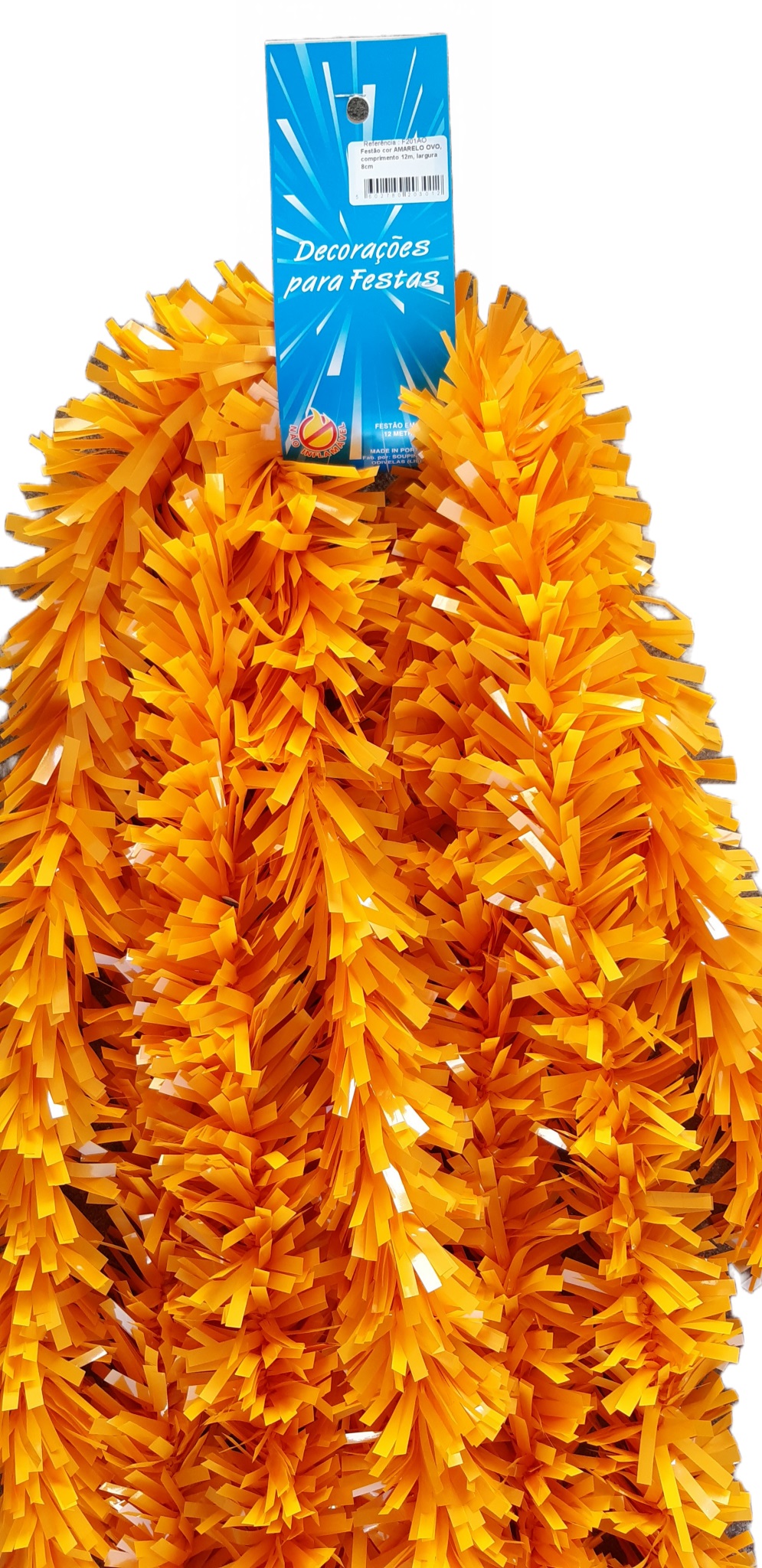 O Festão F201 cor AMARELO OVO 12m, artigo de fabrico português, é muito utilizado não só nos arcos, como também nas roupas dos figurinos das marchas populares. Também é amplamente utilizado na decoração de ruas. Em consequência de ser feito em PVC não inflamável, aguenta ser montado no exterior, apresentando assim uma resistência elevada à chuva.