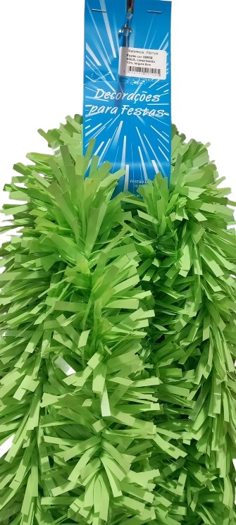 O Festão F201 cor VERDE AGUA 12m , artigo de fabrico português, é muito utilizado não só nos arcos, como também nas roupas dos figurinos das marchas populares. Também é amplamente utilizado na decoração de ruas. Em consequência de ser feito em PVC não inflamável, aguenta ser montado no exterior, apresentando assim uma resistência elevada à chuva.