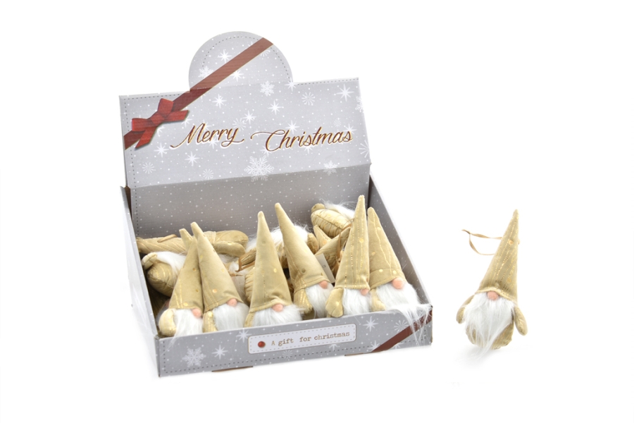L81508 – Gnomo pendurar Bege 17cm, feito em tecido e lã, para pendurar, comprimento 17 cm, pack 1 un. Artigo de fabrico RPC, Itália. É certamente a opção ideal e com muito utilidade na decoração de festas, principalmente em festas de Natal. O Gnomo pendurar Bege 17cm juntamente com cercas de madeira e ursos, fazem uma decoração bastante alusiva ao natal. Também pode ser utilizado em festas temáticas, nomeadamente: natal, entre outros.