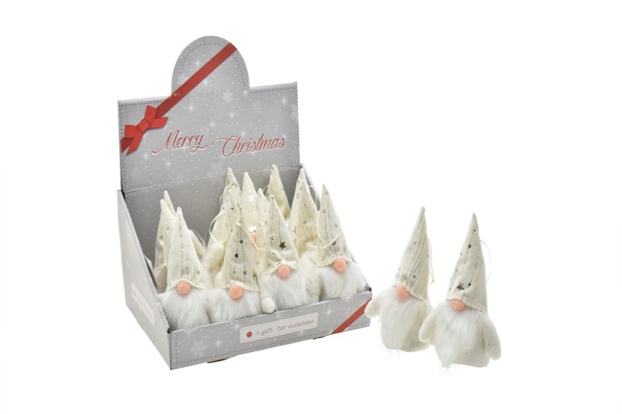 L81440 – Gnomo pendurar Branco 18cm, feito em tecido e lã, para pendurar, comprimento 18 cm, 2 modelos, pack 1 un. Artigo de fabrico RPC, Itália. É certamente a opção ideal e com muito utilidade na decoração de festas, principalmente em festas de Natal. O Gnomo pendurar Branco 18cm juntamente com cercas de madeira e ursos, fazem uma decoração bastante alusiva ao natal. Também pode ser utilizado em festas temáticas, nomeadamente: natal, entre outros.
