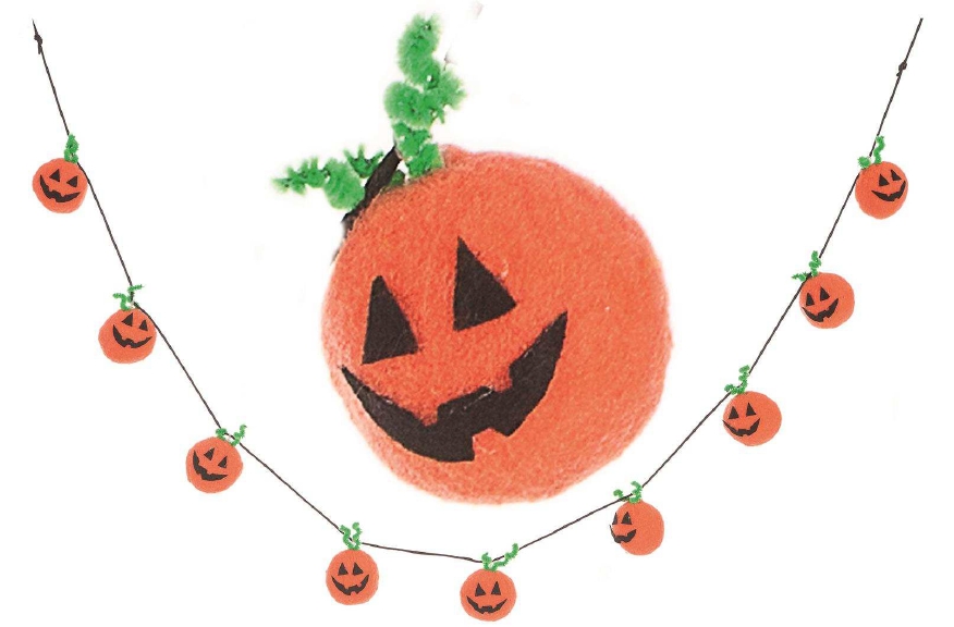 C5492 – Grinalda abóboras esponja 153cm, abóboras em esponja, comprimento 153 cm. Artigo de fabrico RPC. Artigo muito utilizado em decoração de festas, principalmente de halloween.