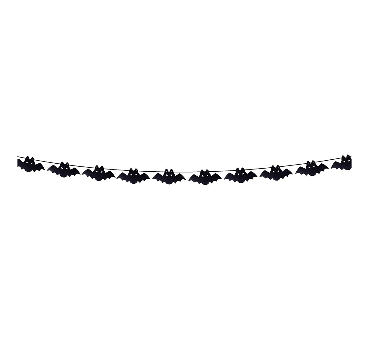 C24367 – Grinalda Morcegos Pretos 300cm, feita em papel, comprimento 300 cm, altura 15cm. Artigo de fabrico RPC. Artigo muito utilizado em decoração de festas, principalmente de halloween.