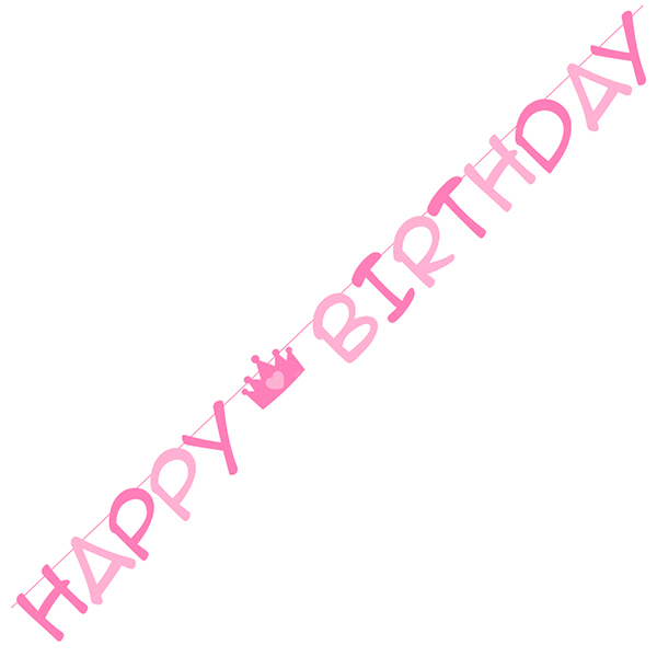 B544.98 – Grinalda Papel Rosa Happy Birthday 3m, comprimento 3 metros, altura 32 cm. Artigo de fabrico RPC/Itália. Artigo muito utilizado em decoração de festas, principalmente infantis. Também pode ser utilizado em festas temáticas, nomeadamente: frozen, mickey, homem aranha, minnie, princesas e muitos outros temas.