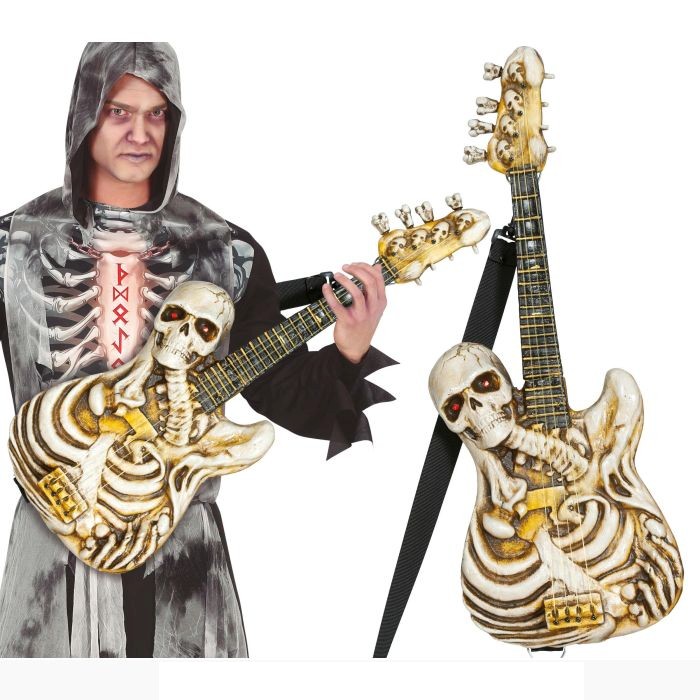 A Guitarra Esqueleto 58cm é amplamente utilizada em festas de Carnaval ou de Halloween. Também pode ser utilizada de modo a criar cenários, tais como cenários de ensaios fotográficos, peças de teatro, mas é principalmente utilizado para decorar ambientes fantasmagóricos ou assustadores. A Guitarra Esqueleto 58cm pode ser usado juntamente com outros artigos, nomeadamente: copos, pratos, guardanapos e outras decorações alusivas ao halloween.