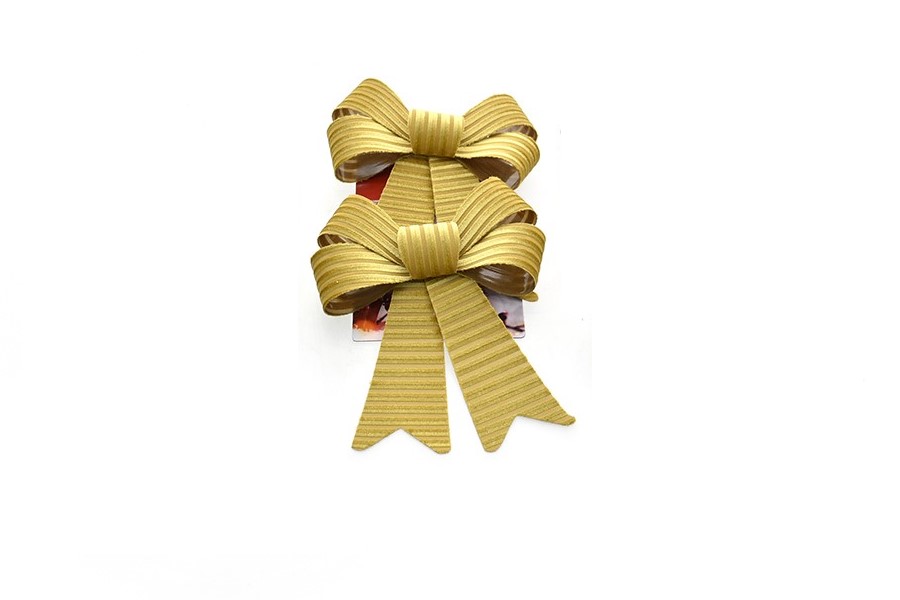 L61180/2 – Laço cor Dourado 2x20cm, comprimento 20 cm, largura 2cm, altura 14 cm, pack 1un. Feito em PVC/poliester. Artigo de fabrico RPC/Itália. O Laço cor Dourado 2x20cm juntamente com as bolas de natal confere à decoração um ar muito encantador, principalmente quando colocado nos pinheiros de natal. Ideal para ser utilizado com o veado branco, gnomos ou com o pai natal. Amplamente utilizado em decorações natalícias juntamente com a cerca de madeira com neve.