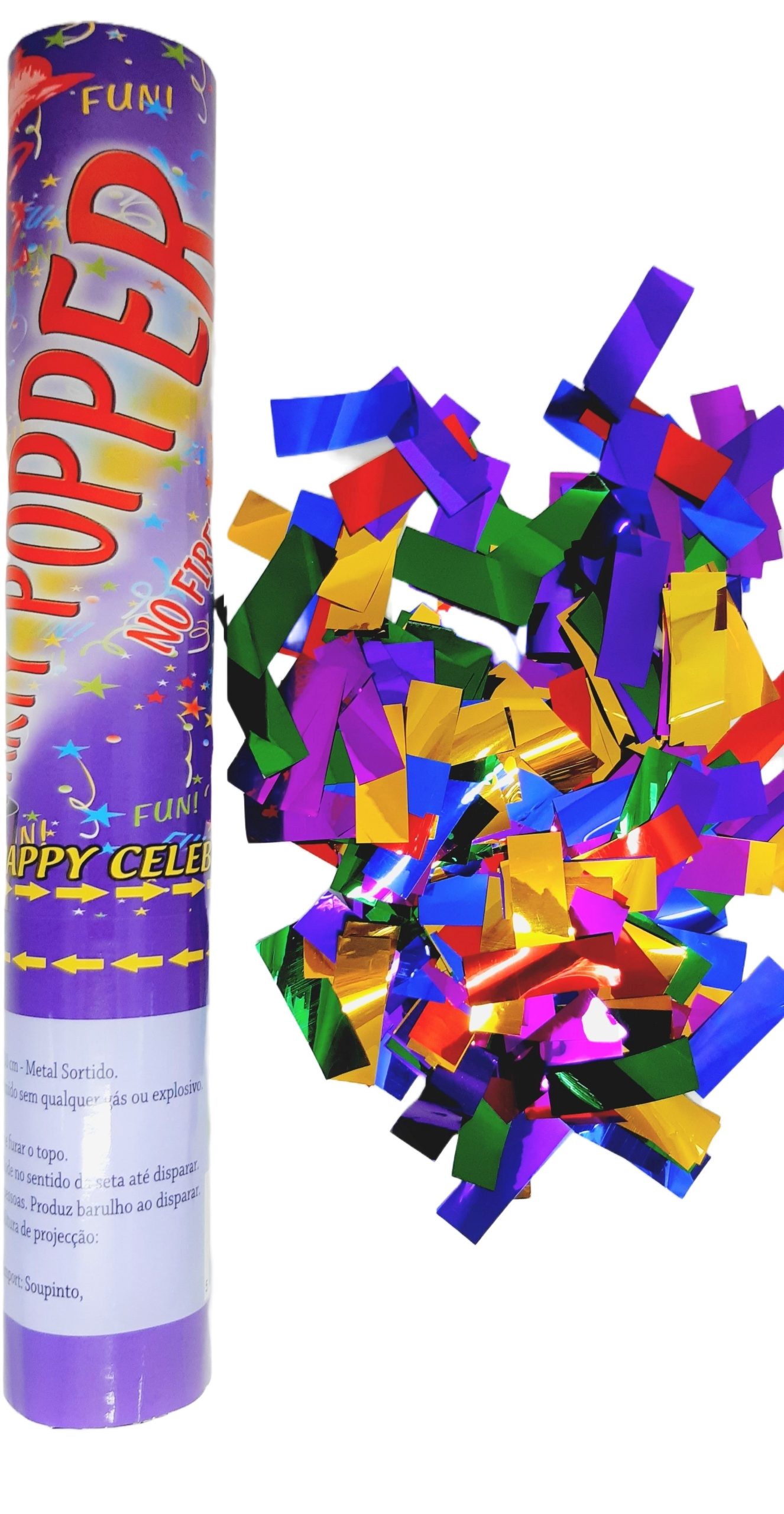 O Lança Confetis Sortido Metalizado 60cm é amplamente utilizada no final de festas. Também pode ser utilizada de modo a criar cenários, tais como cenários de ensaios fotográficos, peças de teatro, mas é principalmente utilizado para celebração de momentos especiais.