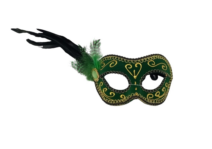 C62125VD – Mascarilha c/ pluma Verde, 1 unidade. Artigo de fabrico RPC. É certamente a opção mais indicada para quem quer completar a sua fantasia de anos 20. Também pode ser utilizado em festas cujo tema são as profissões. Juntamente com o vestino e a cigarrilha, o figurino fica completo. De maneira idêntica a Mascarilha c/ pluma Verde também pode ser utilizado como acessório de carnaval. Também pode ser utilizada de modo a criar cenários, tais como cenários de ensaios fotográficos, peças de teatro, mas é principalmente utilizado para fantasias. A Mascarilha c/ pluma Verde pode ser usado juntamente com outros artigos, nomeadamente: copos, pratos, boas e outras decorações alusivas ao tema da festa.