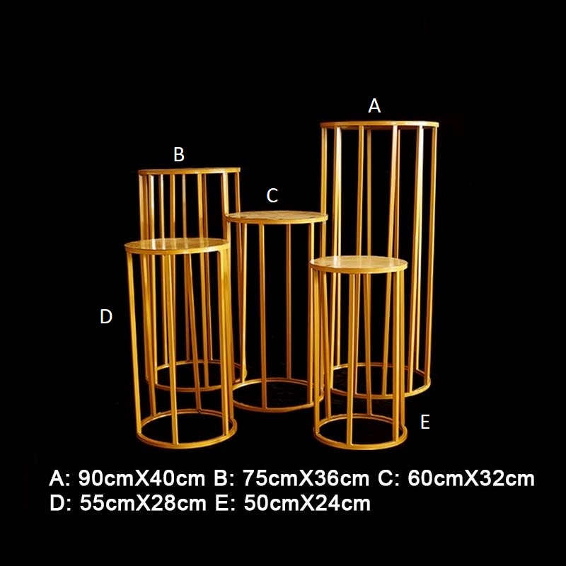 B19697 – Trio de Mesa Redonda Metal Dourado A, B e C, com as seguintes dimensões: A (90×40)cm, B (75×36)cm e C (60×33) cm. Artigo de fabrico RPC. É certamente um artigo muito utilizado em decoração de festas, principalmente em festas infantis. Também pode ser utilizado em festas temáticas, nomeadamente: dia dos namorados.