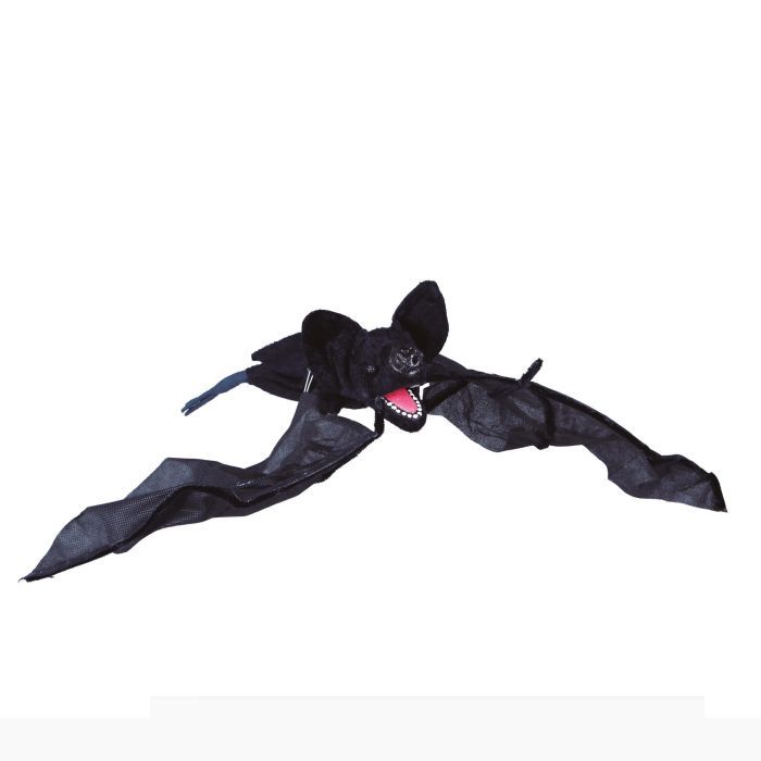 C24385 – Morcego Preto asas abertas luz e movimento, para pendurar, 70cm, pack 1un. Artigo de fabrico RPC. Artigo muito utilizado em decoração de festas, principalmente de halloween.